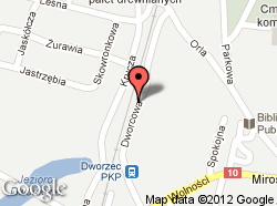 znajduje się w Mirosławcu przy skrzyżowaniu drogi krajowej K - 10 (ul. Wolności z ul. Spokojną). Hotel czynny jest całą dobę. |