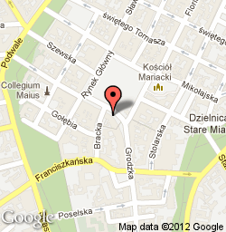 mieści się przy ul. Brackiej, w pasażu zabytkowej kamienicy hetmańskiej, 30 metrów od płyty Rynku Głównego, 500m od Wawelu... |